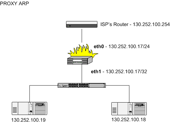 Do not add the Proxy ARP'ed address(es) (130.252.100.18 and 130.252.100.19 in the above example) to the external interface (eth0 in this example) of the firewall.