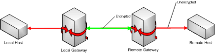 The purpose of a Virtual Private Network (VPN) is to provide for secure communication between a set of hosts. Communication between a pair of hosts connected by a VPN occurs in stages: