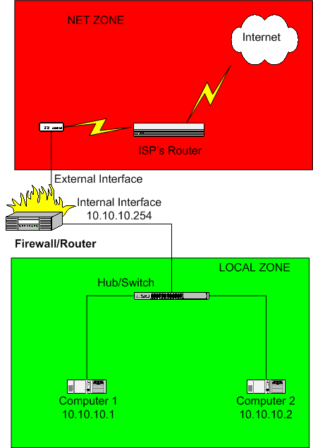Shorewall views the network where it is running as being composed of a set of zones. In the two-interface sample configuration, the following zone names are used: